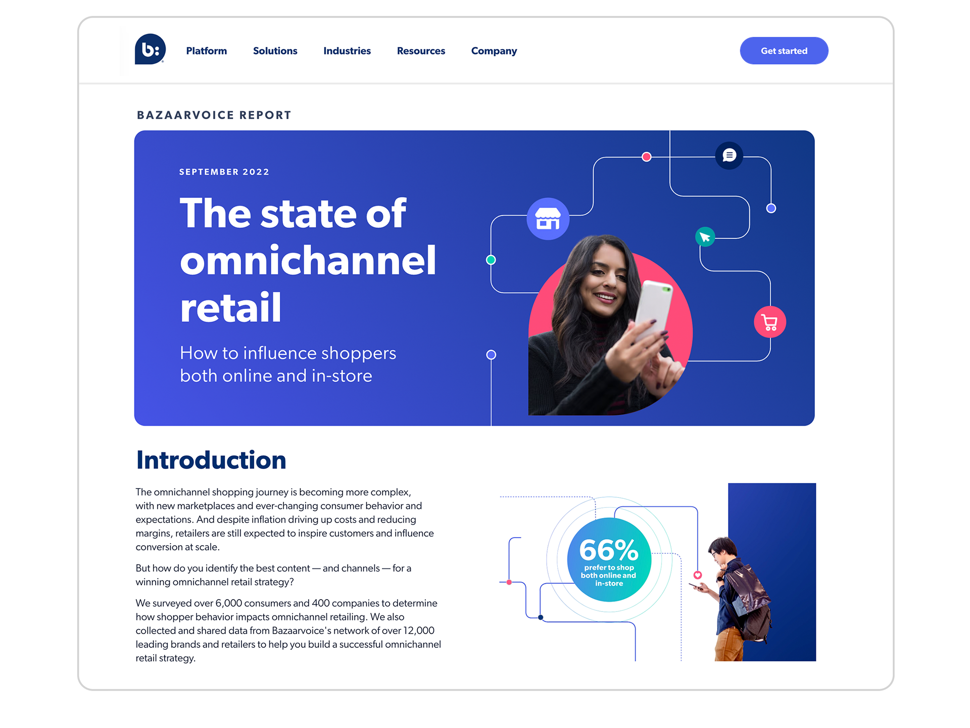 I designed the UI for the landing page of Bazaarvoice's "The State of Omnichannel" report, utilizing Ceros to create engaging interactions. Additionally, I provided art direction for the accompanying video animation.